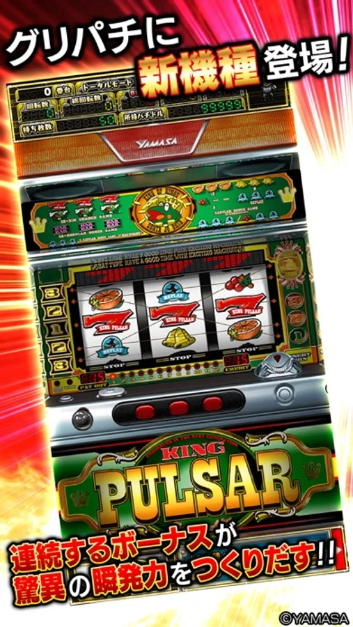 ドットによるチャンス表示や前兆システム&ボーナス告知を搭載し話題となった名機「キングパルサー」がついにグリパチに登場!