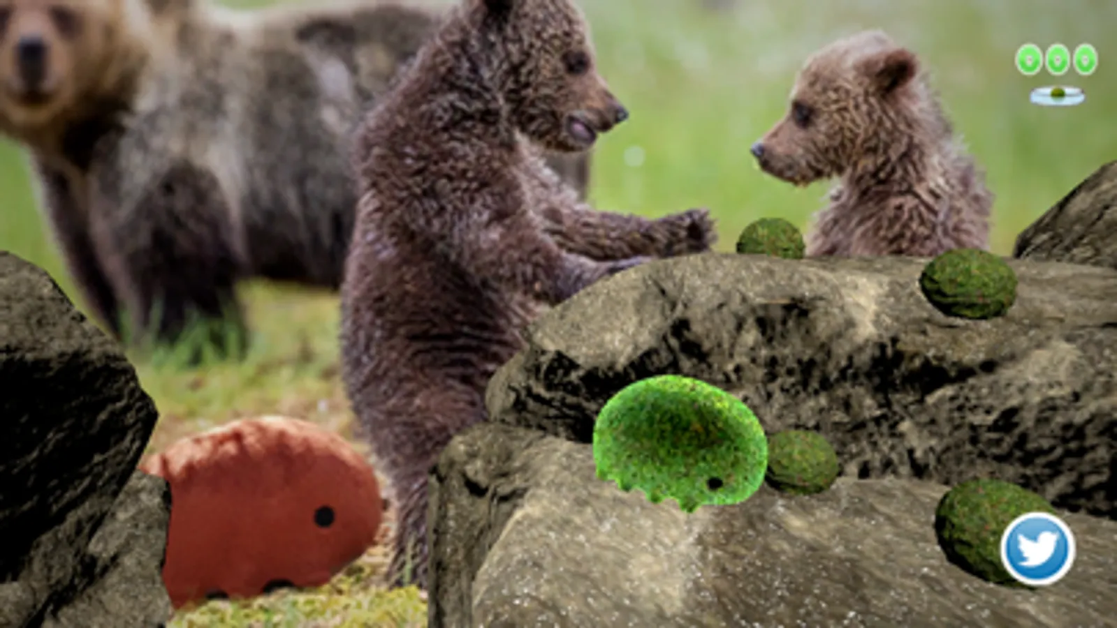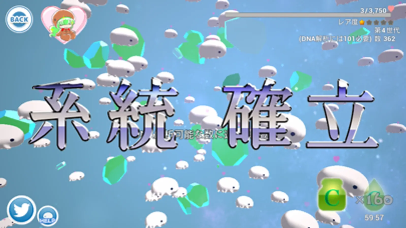 本作の最大の特徴は、ネットワークを使用したユニークな機能で、オリジナルの『ご当地クマムシさん』のイラストを修正し、新種のクマムシさんとしてサーバーに登録することができます。登録されたクマムシさんは別のプレイヤーのゲーム中にも登場し、最初に発見した人が正式な名前を登録することが可能で、そのクマムシさんをさらに進化させ新種として地球に解き放つことも可能です。Twitterの#ご当地で検索すれば、その進化の歴史が丸わかり。種の同定や分類学的な作業をカジュアルな操作に落とし込んだ機能で、クマムシさんの進化(KUMAMUSHINKA)の歴史の1ページに誰もが加わることができます。