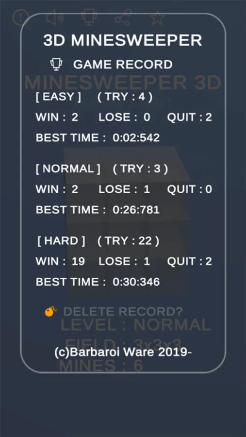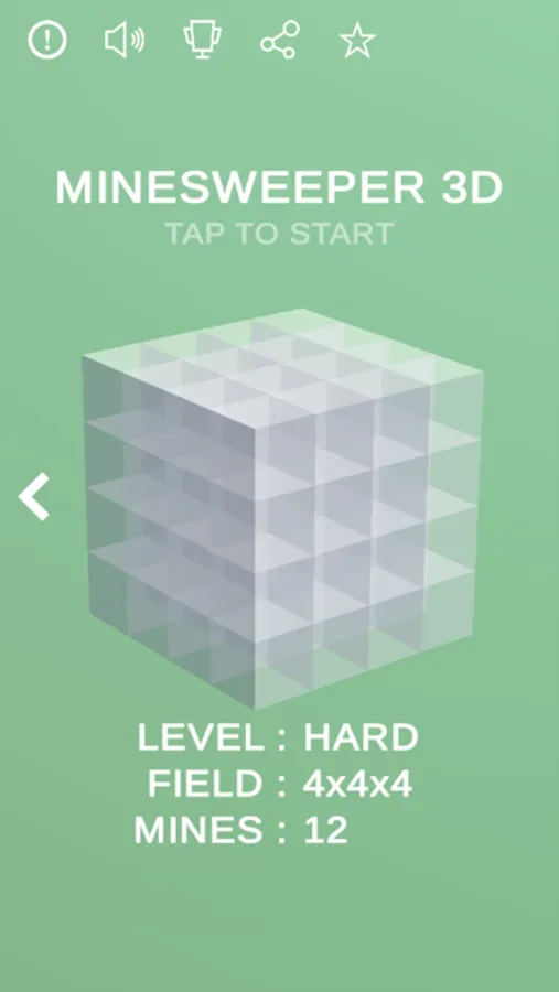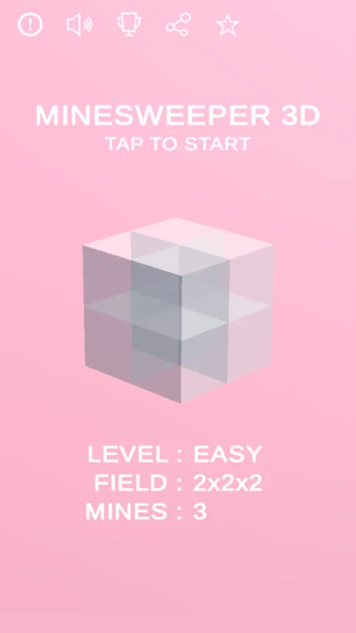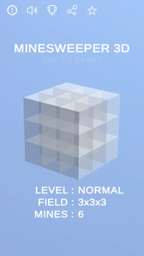 ・3 types of fields: Easy (2x2x2), Normal (3x3x3), Hard (4x4x4), Expert(5x5x5)
