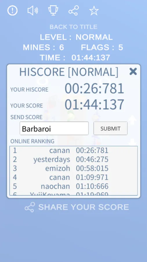 By tapping FLAG on a square that is already cleared, you can set a flag on all squares that are not yet cleared.