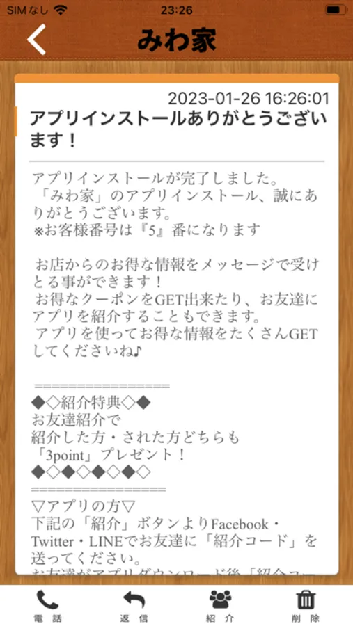 みわ家のアプリをSNSを通じてお友達に紹介する事ができます。