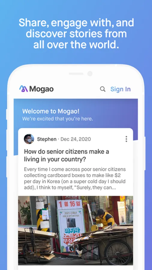 Mogao is a global storytelling platform where anyone can share and discover stories from all around the world. Powered by Asian Boss, Inc., the purpose of Mogao is to bridge social and cultural gaps and bring the world closer together through stories.
