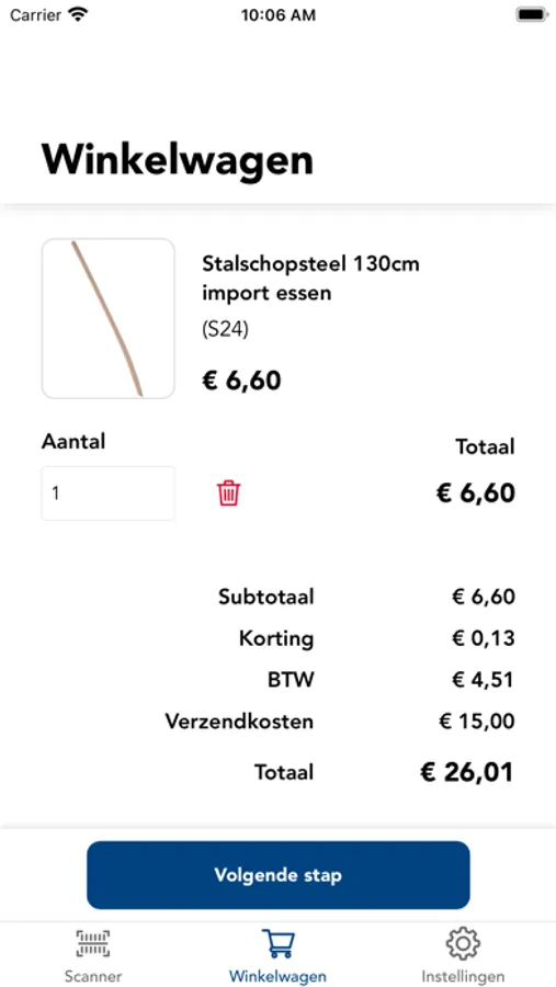 - Een barcodescanner waarmee u de barcodes van de etiketten kunt scannen d.m.v. de camera op uw smartphone.. Het artikel komt direct in beeld.