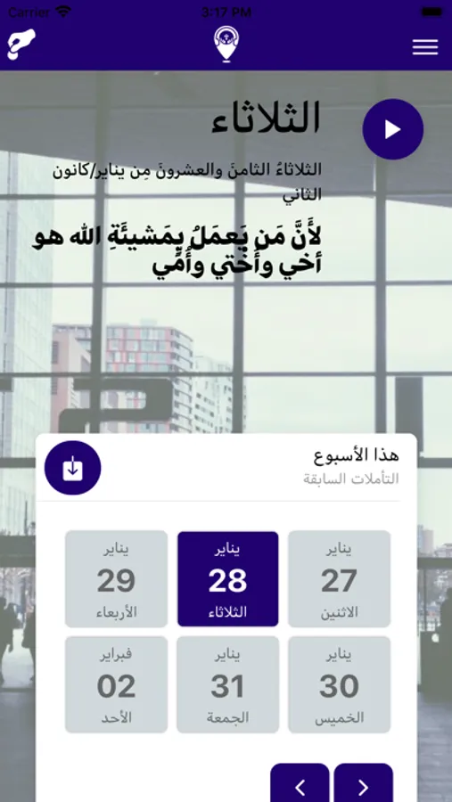 يُقدَّم البرنامج صلاةً يوميةً جديدةً كلَّ يومٍ من الإثنين للجمعة بالإضافة إلى صلاةٍ واحدةٍ يوم الأحد. والبرنامج لا يهدف لتقديم "فكرة اليوم" أو عِظة أو دراسة للكتاب المقدَّس، بل مجرد إطارٍ لصلاتك الشخصيَّة.