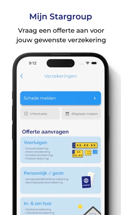 - Binnen 3 minuten je schade melden met bijbehorende foto's.