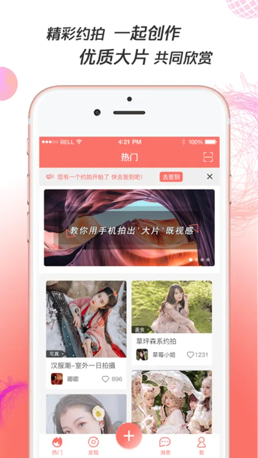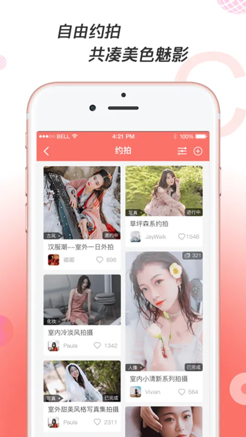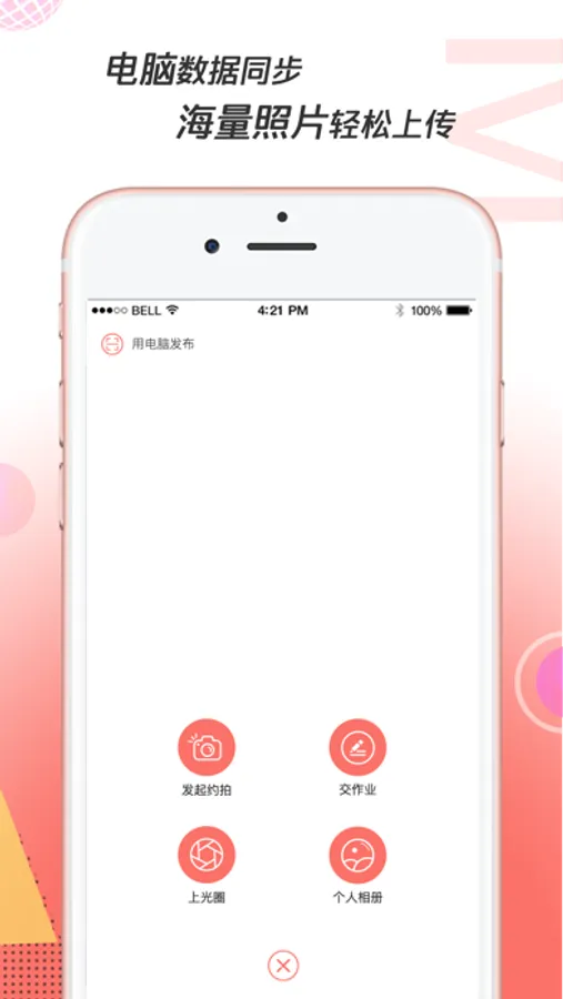 应用主要有发起约拍,交作业,分享相册和上光圈功能。