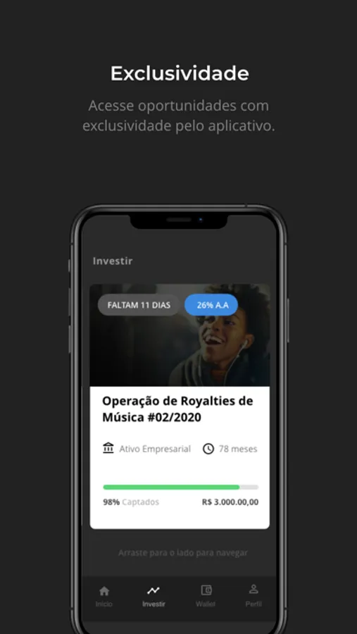 A primeira plataforma de investimento em ativos reais, agora na palma da sua mão.