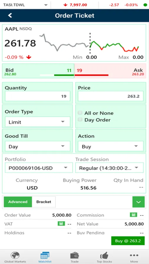 • Watch-list chart to analyze the market compared with average volume and percentage change