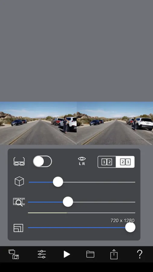 - If you have strong strabismus, use red / blue glasses to view in anaglyph mode.