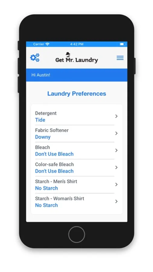Mr.Laundry offers the best, personal, next-day return, laundry service. Create an account, choose your plan type – weekly or “by request” – set up your laundry preferences (everything from which detergents, fabric softeners and dryer sheets you like to how you want your clothes folded), set up your first pickup and say “Goodbye!” to laundry.