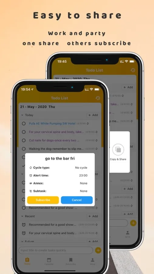 Automatic processing: Unfinished to-do events are automatically moved to today, and completed events are automatically removed the next day without tedious operations