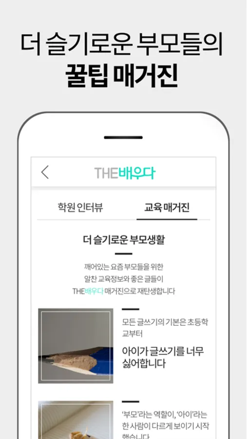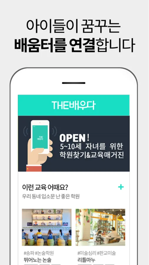 THE배우다는 내 아이를 믿고 보낼 학원을 추천하고 학원에서 충족되지 못하는 아이의 호기심과 재능 발현을 위해 THE배우다만의 다양한 클래스를 만듭니다. 이와 함께 부모에게 도움이 될 유익한 교육정보도 웹매거진 형태로 제공합니다.