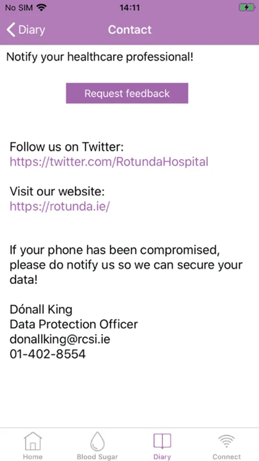 The GDMApp syncs with a Bluetooth meter for blood glucose monitoring. This easy-to-use app is targeted at women suffering from GDM (Gestational diabetes mellitus). Part of the BigMedilytics H2020 project, Diabetes Pilot, it is targeted for use as a part of the Pilot to provide women with the opportunity to track, manage and report to their hospital, or in this project Rotunda Hospital in Ireland (https://rotunda.ie/).