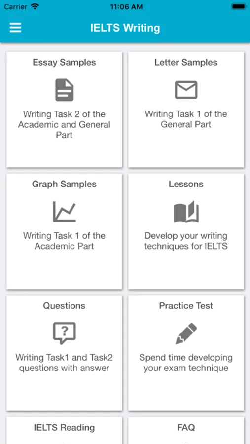 IELTS Writing: Free provides samples that content each IELTS Writing app including Writing skills all represented in the sample contents and tips or tricks to solve test lesson.