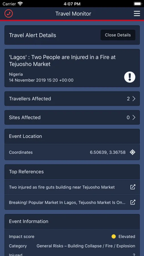 - Travel security information – you can access all relevant information of your travel destination at any time