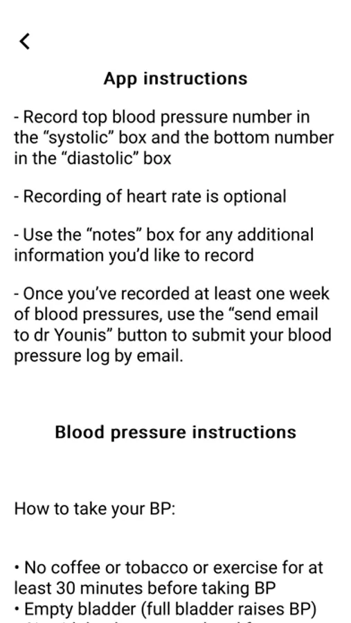 You can use the blood pressure cuff of your choice and record the results in this convenient app prior to sending in your results to Dr. Younis.