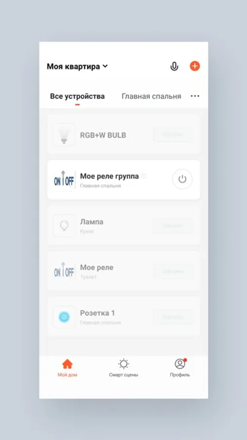 На экране приложения можно увидеть все подключенные устройства и их статус: «включено», «выключено», «вне сети».
