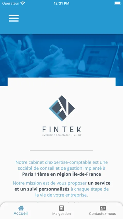 Fintek, cabinet d'expertise comptable à Paris dans le 11ème arrondissement vous accompagne avec des solutions cloud moderne dans la gestion et le pilotage de votre entreprise. Vous profiterez de votre tableau de bord avec prévisionnel, de la trésorerie à jour en temps réel, de la gestion commerciale et du tableau des relances... depuis l'application Fintek.