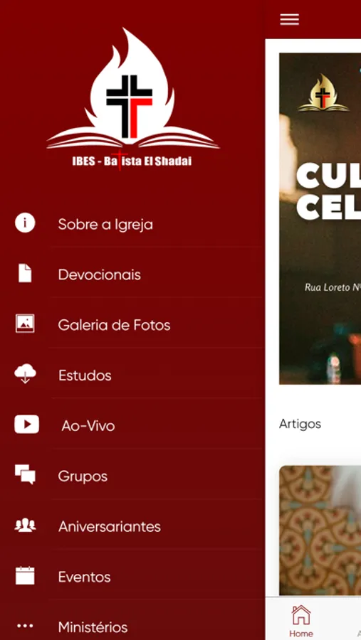 Aplicativo oficial da IBES El Shadai conta com as seguintes funcionalidades: