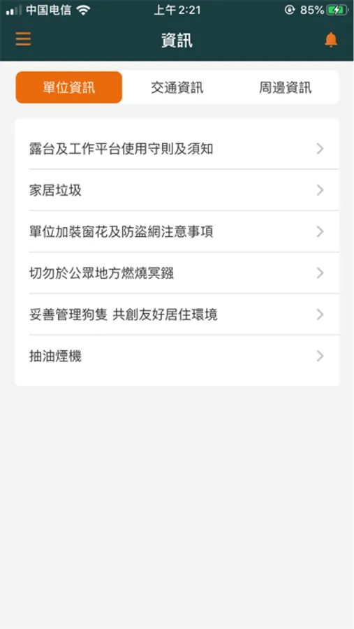 【聯絡資料】: 提供常用公共設施及緊急聯絡電話號碼查詢。
