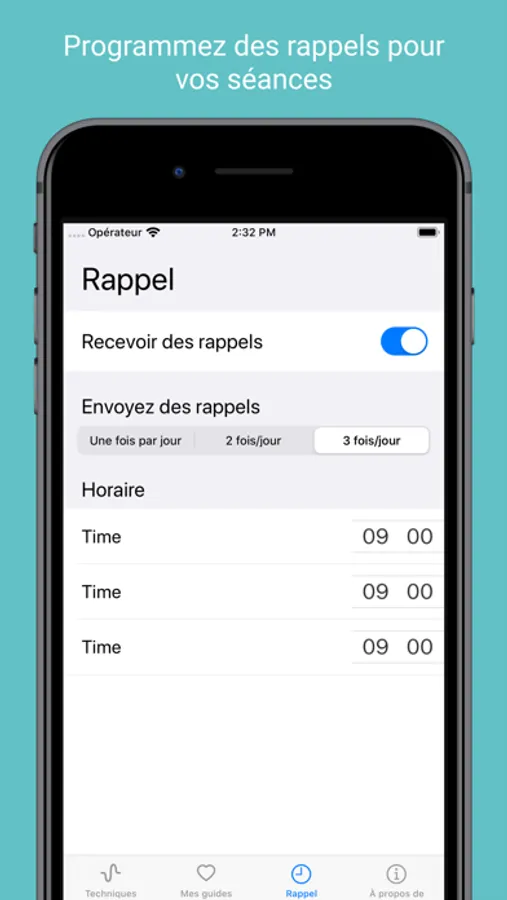 Choisissez 5 photos sur votre téléphone et téléchargez-les comme fond d’écran de vos guides respiratoires. Ainsi vous pourrez créer des guides respiratoires par thème. Par exemple famille, amis, nature, voyage, etc.