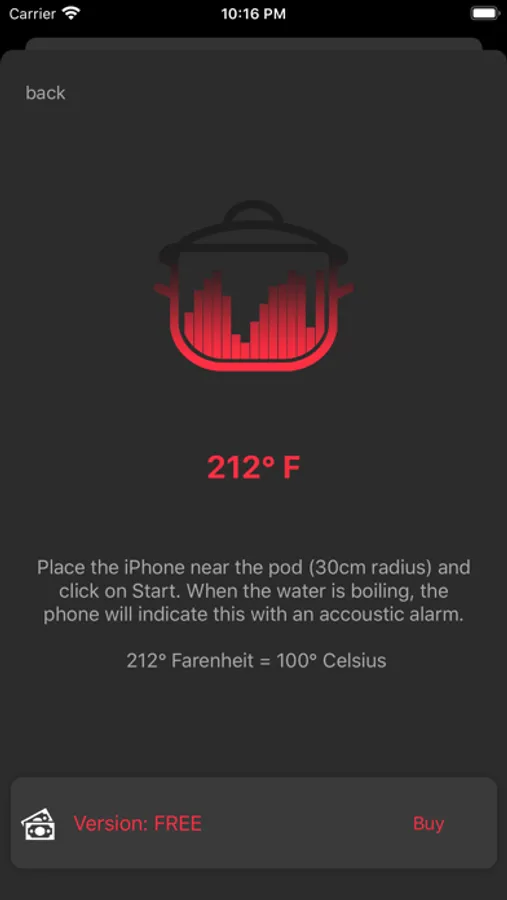 1.) Place the iPhone near the pod with the water you want to cook (approx. 30cm radius) and click on Start.