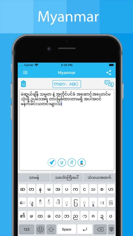 Myanmar keyboard app will allow you to write message, story, facebook posts, blogs, Emails in Myanmar language.
