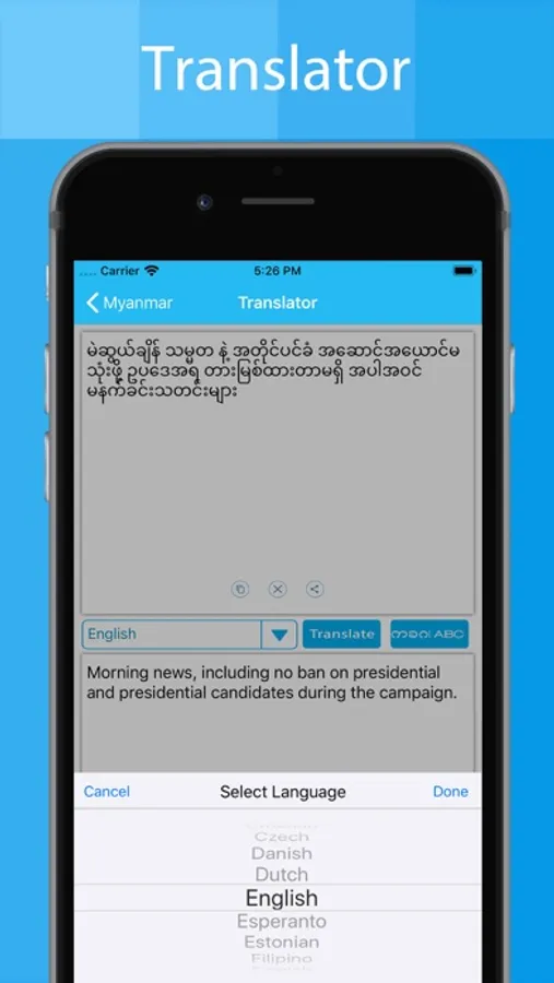 Myanmar Translator app will allow you to translate message, story and you can share translated text to your friends and family bye Facebook, twitter and emails.