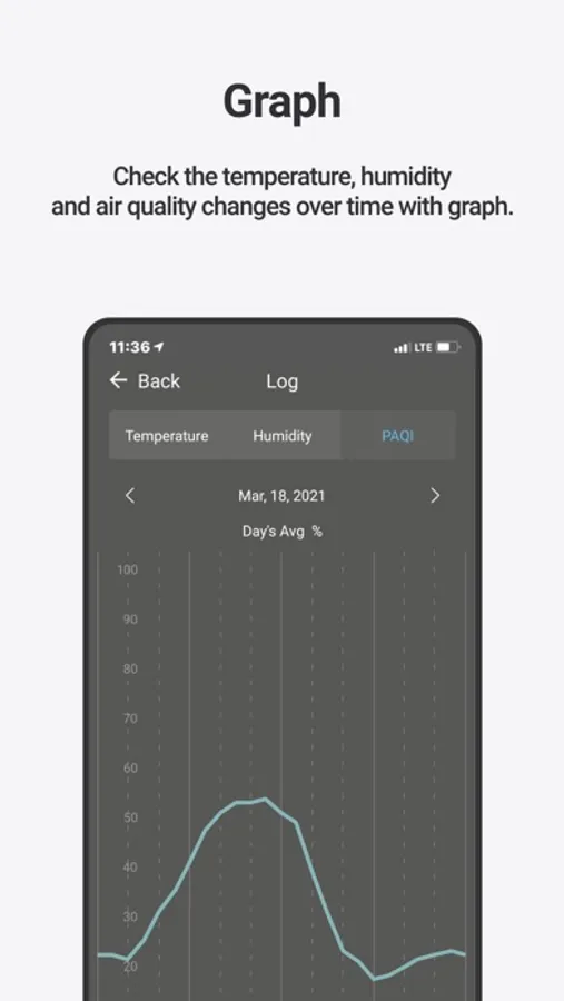 2. Log Graph: Automatically record your environment data for up to 7 days, and display the history in graph.