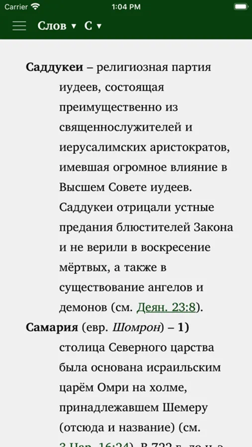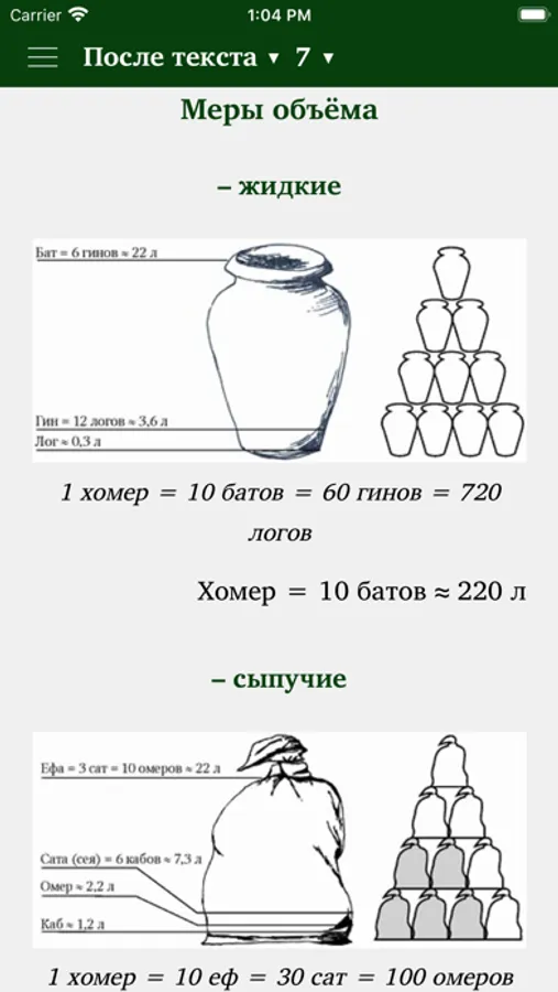 The app includes a concise glossary of basic terms, titles and names, sorted by letter. It also includes various tables and exploratory material with pictures.