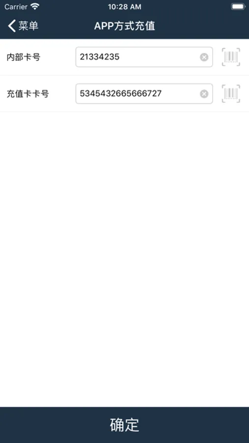 2. Scan the barcode to quickly fill the internal card number and recharge card number.