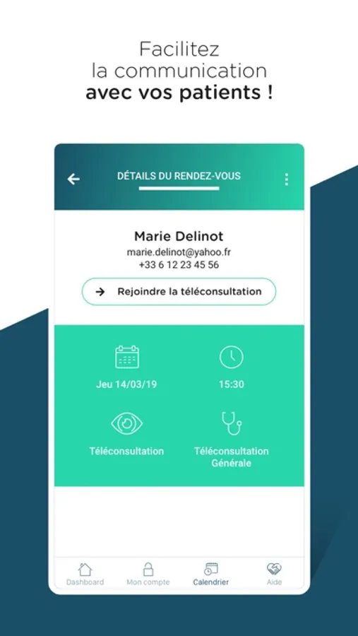 Agenda: vous pouvez gérer votre planning des consultations de n’importe où et en temps réel: consultez, créez, modifiez, acceptez ou annulez vos rendez-vous.