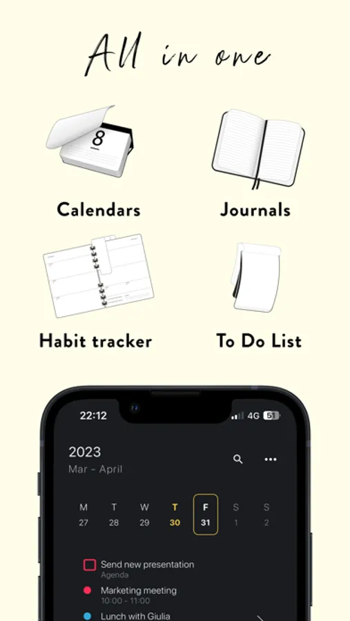 Use your creativity to uniquely combine productivity features with personal growth and self-care tools to create your unique life planner. Express yourself like never before.