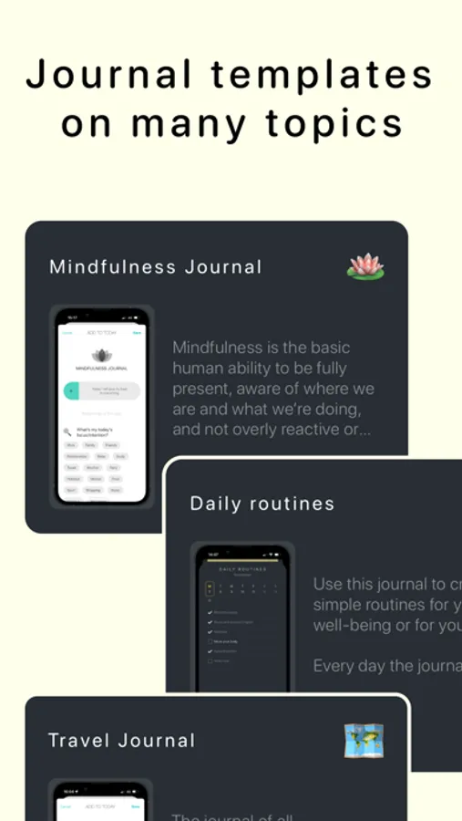 But what make our journals special and unique is the possibility to customize them with custom prompts and type of entries, such as photos, link, quotes, tasks, and much more. So if you don’t find the journal that suit your needs you can always create one of your own or hack the existing ones.