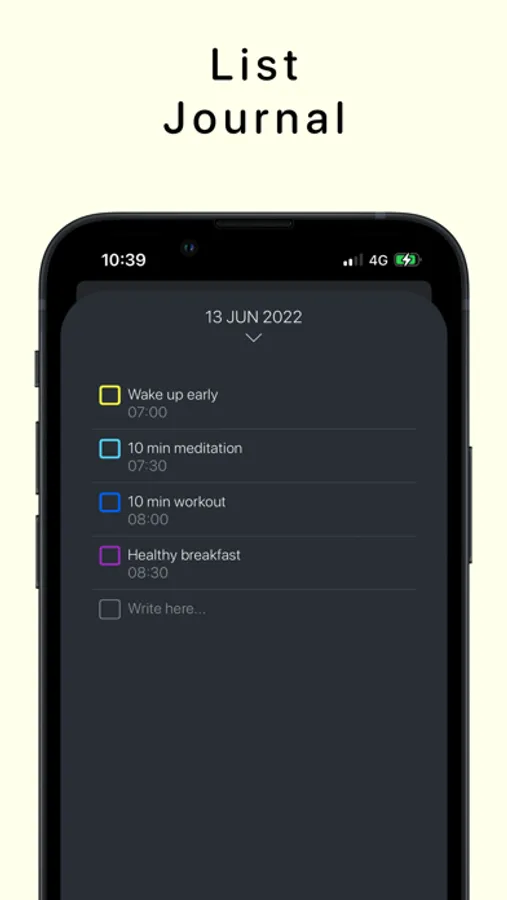 For your well-being, keep a daily routine that repeats each day. Track your activities, such as reading, meditating, and drinking water, in Moleskine Journey. You can create a daily routine to tick off each activity or create a specific journal for each activity you care about.