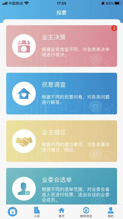 4)业主决策:实现业主对业委会选举、物业公司选聘投标表决,以及维修资金使用的表决等工作。需要建立在实名制认证+人脸识别基础上,且是房屋所有权人的基础上进行。