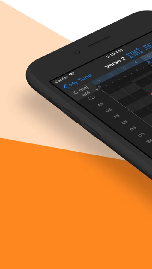 Enable recording and start playing on the note editor's scale buttons or use your MIDI controller connected over USB of Bluetooth. You can also record chords with your MIDI keyboard. Tune Maker will recognize chords you are playing and insert them to the chord track.