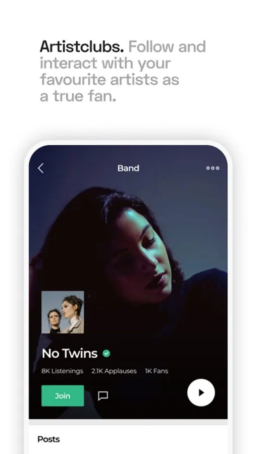 Clean feed with no ads or distractions, only updates and music from your favorite musicians. Listen to unlimited music, create a playlist of beloved tracks, search and share music with friends, browse music charts and discover trending music, enjoy latest new music releases, sync your music interaction experience between web and your phone.