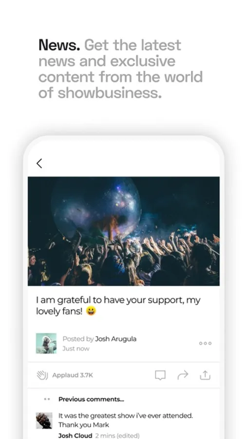 Music interaction network for you to discover new music and the artists you’ll love. Experience Show4me on your phone: listen to music, explore tracks and charts, follow new music releases, interact with various artists and bands, tune in to live music shows and concerts, and enjoy more new music - and only music - content.