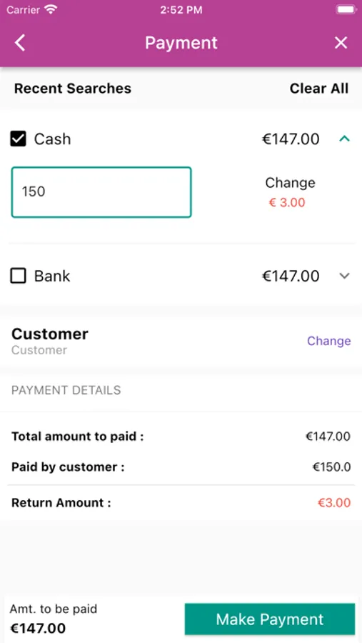 • The app supports online and offline payment methods.