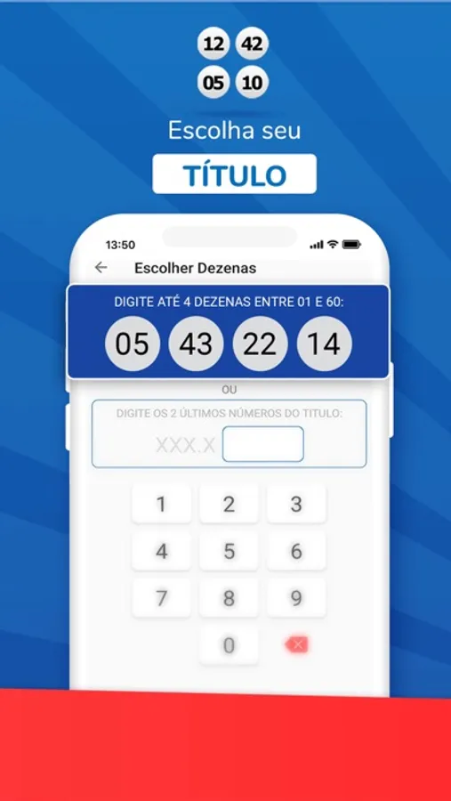 Dezenas no App: Sabe aquele número da sorte? Use ele aqui no app pra escolher as dezenas (nas compras com cartão de crédito);