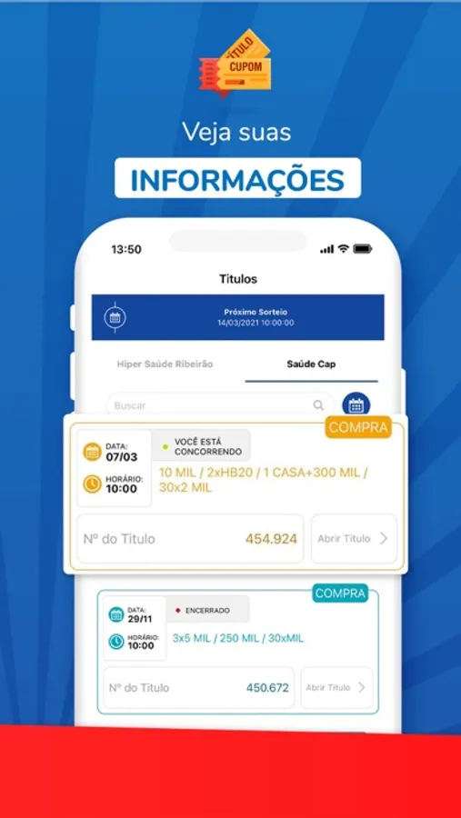 Notificações exclusivas: Informações em 1ª mão sobre os títulos, sorteios, premiações e resultados;