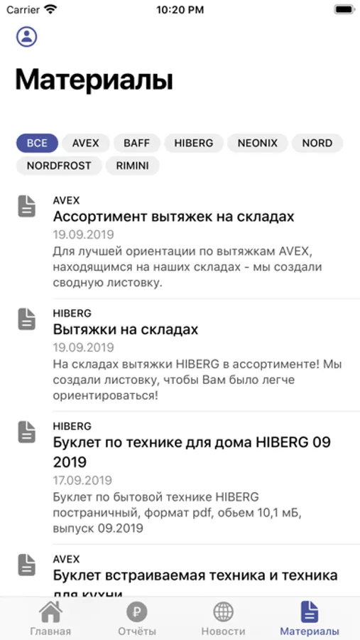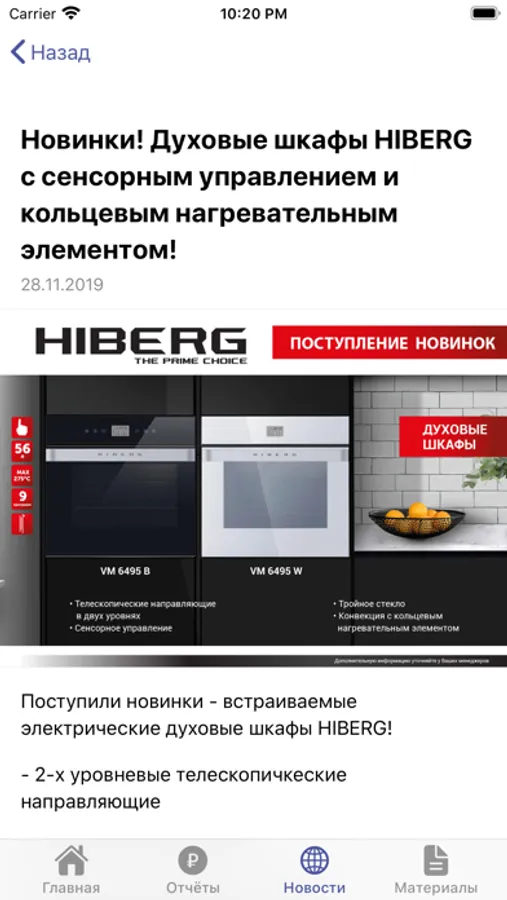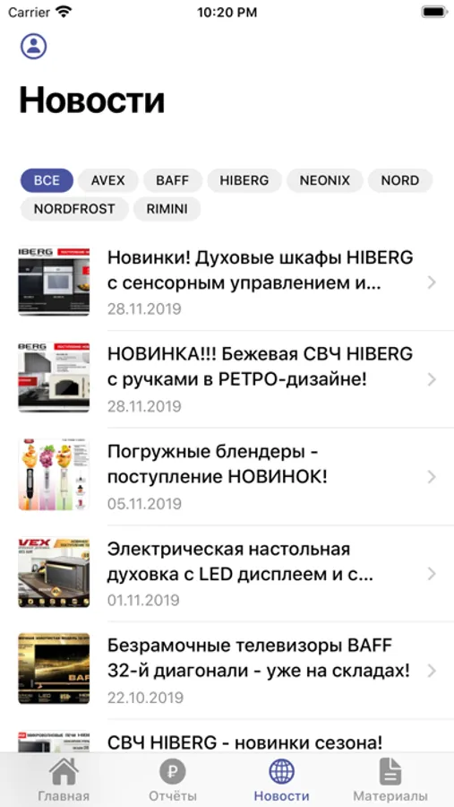В приложении доступна удобная и актуальная новостная информация о последних поступлениях и преимуществах брендов NORDFROST, AVEX, HIBERG, BAFF которой можно воспользоваться и при необходимости сообщить своим покупателям. В то же время ваш профиль привязан к сайту и обновляется при каждой зарегистрированной продаже.