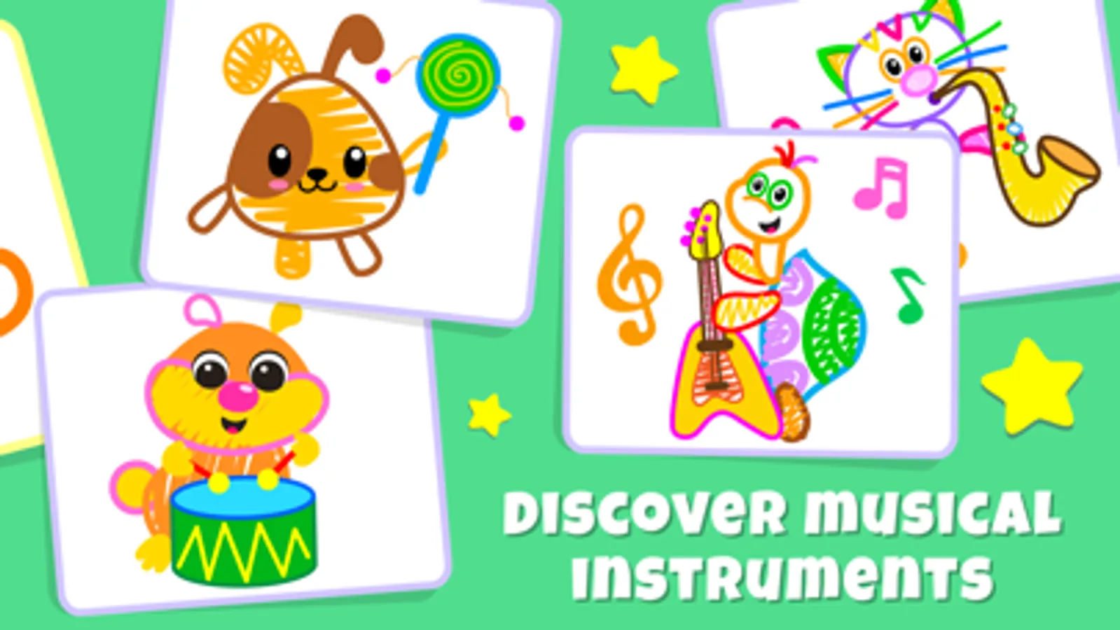 Now, in addition to their favorite characters, young users can color in kind monsters who like to jam. The new characters play musical instruments, which stimulates creative thinking and sparks interest in music. A variety of drawing tools and special designs create a supportive space for children to express their creativity. And the sound effects and the ability to play with the drawn characters will definitely attract the attention of children!