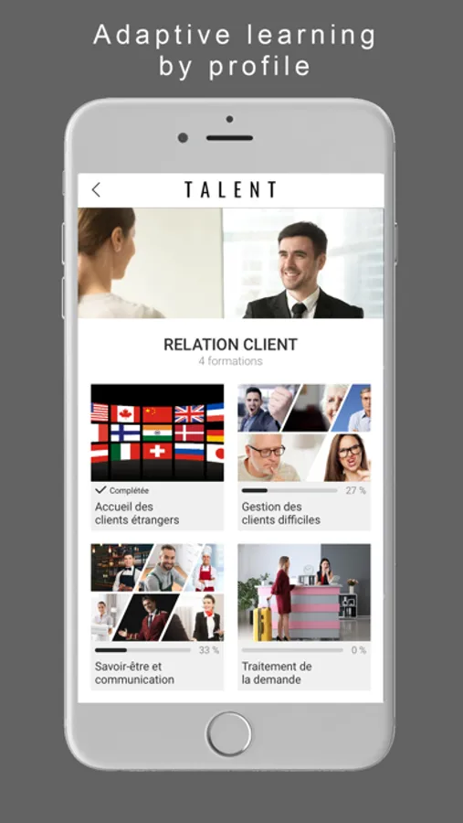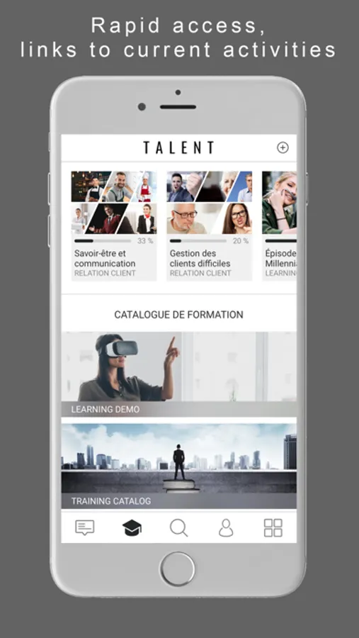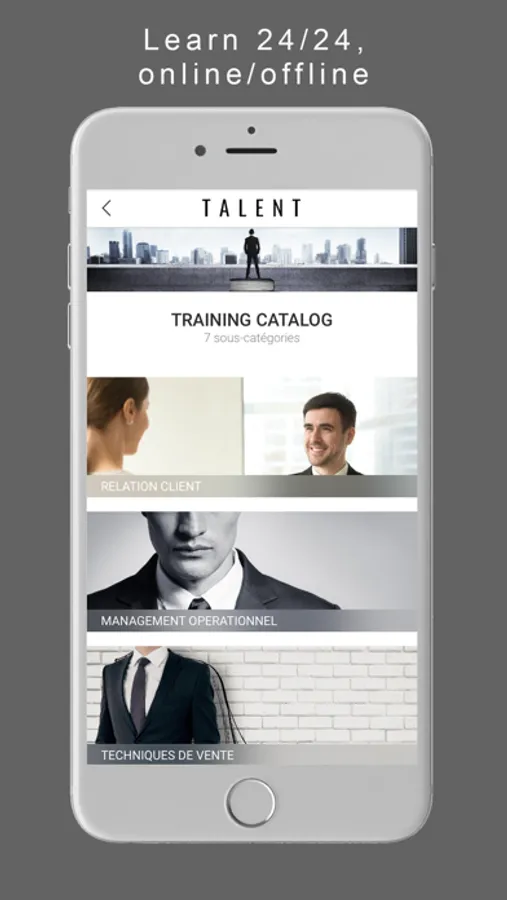 The TALENT application is based on the best mobile technologies. Our pedagogical engineers and multimedia designers create engaging learner-friendly content available 24/24 on your favorite media.