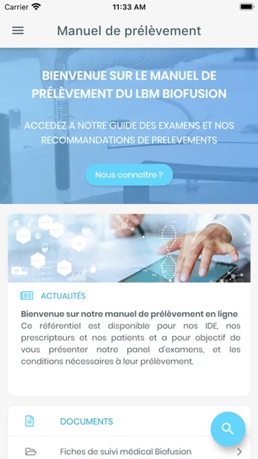 BIOFUSION est une application médicale française ayant pour objectif la mise à disposition d’un manuel de prélèvement à l’usage des professionnels de santé (Infirmiers, Biologistes, Médecins).