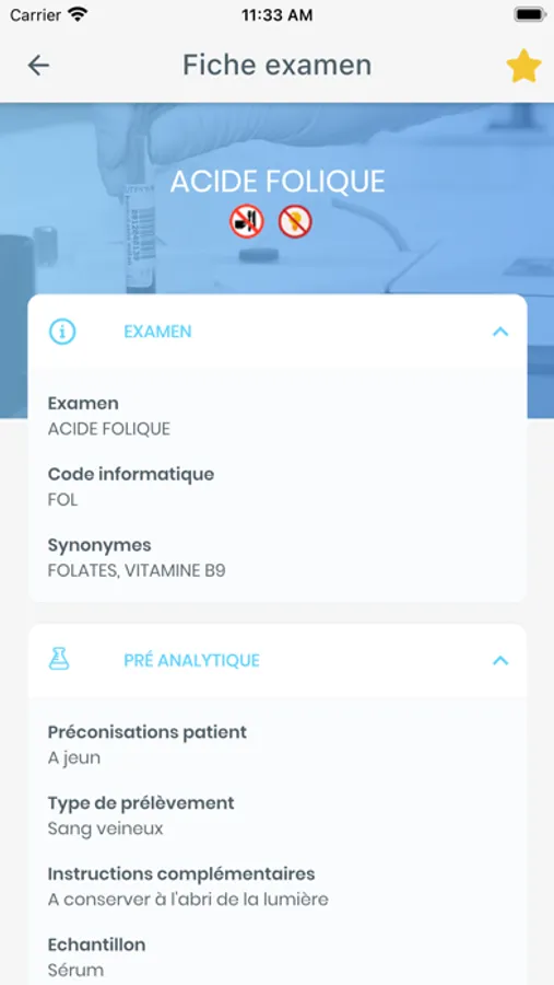 Afin de simplifier vos futures recherches, une mise en favoris des analyses est disponible.