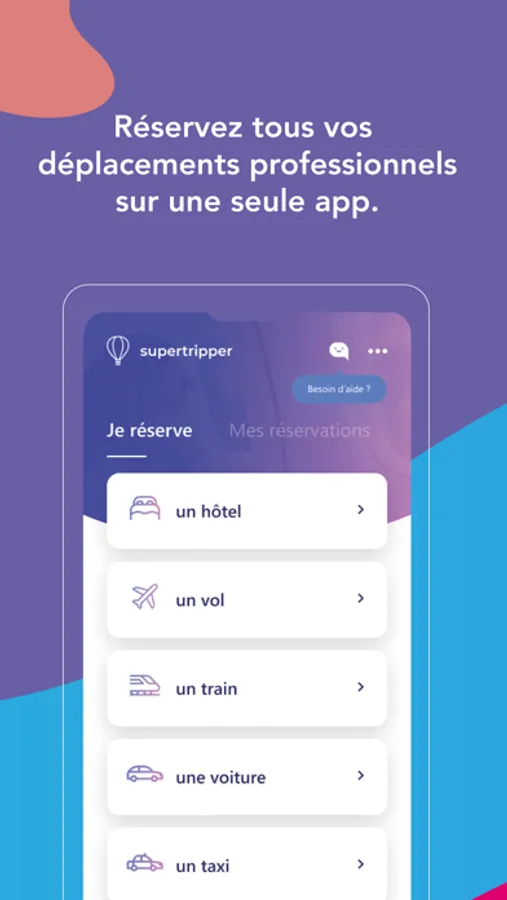 With our new Supertripper mobile app, simplify your business travel now. Book and manage all your business trips for your next flights, trains, hotels, rental cars and taxi transferts in a single tool.