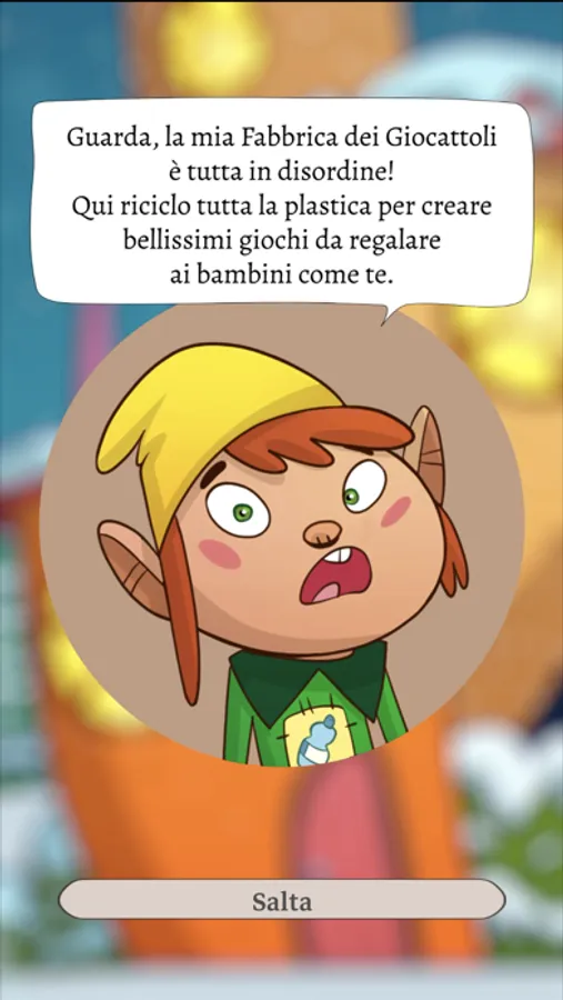 Dovrai aiutarli a riciclare la plastica nella Fabbrica dei Giocattoli, la carta nella Cartoleria degli Elfi, i canditi e i dolcetti avanzati dell’Elf Kitchen e i cocci di vetro della Stanza degli Addobbi. Inoltre, dovrai scoprire chi è stato a combinare tutto questo disastro…