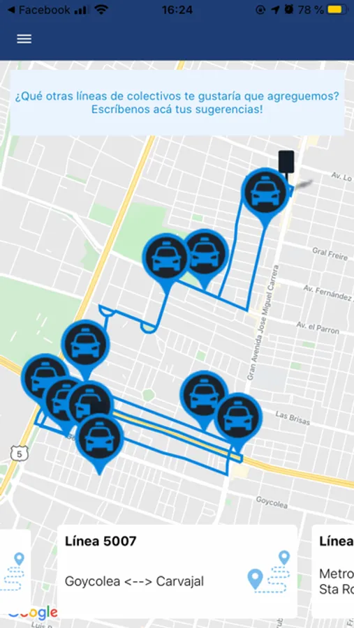 Application for official collective taxis in Chile. Check the available routes and the real-time position of the groups.